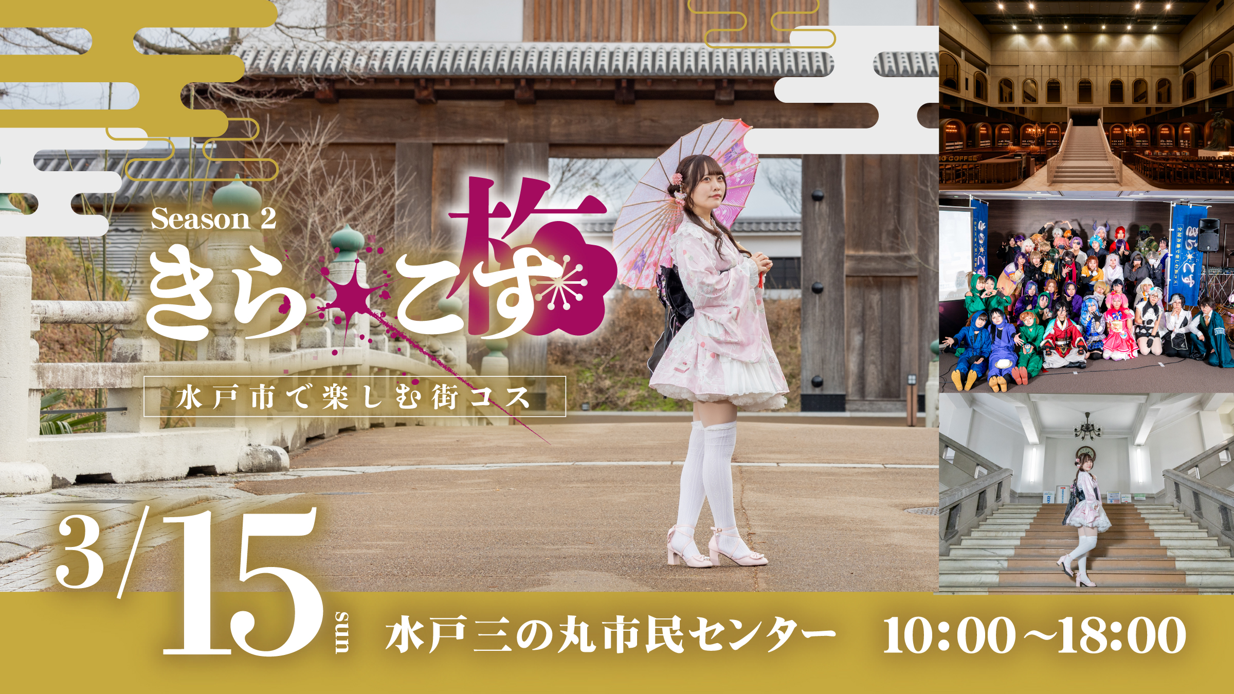 全国各地の施設や商店街、イルミネーションイベントの中など、街の中でコスプレをしながら撮影・散策を楽しむことができるイベントです。コスパフォやアニクラDJ、同人即売会などのコンテンツも有り!